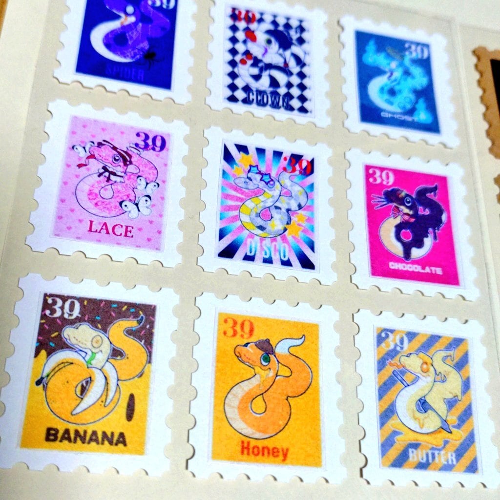 なんちゃってボールパイソン切手風サンキューシール 9枚×2シート